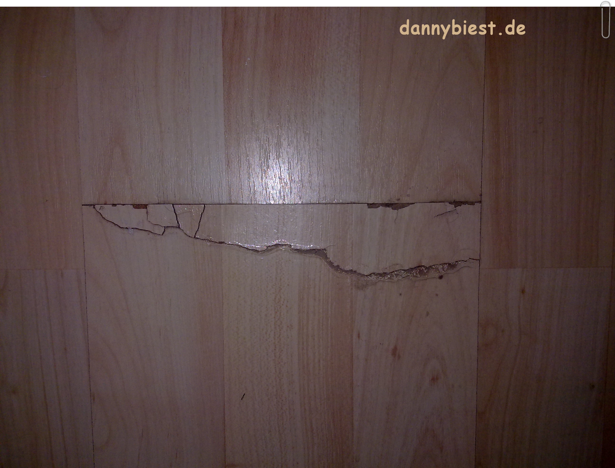 Hier sieht man auf dem Bild ganz deutlich das bei dem Laminat gefuscht wurde, das wäre bei einem Profi nicht passiert. Der tauscht das beschädigte Brett vom Belag aus.